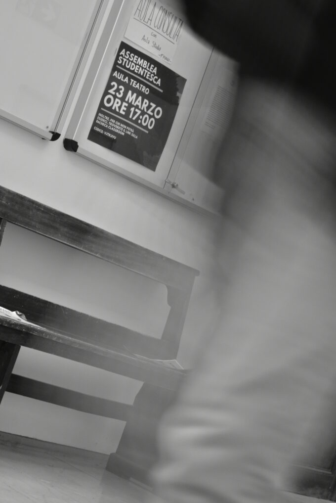 Tornando in Accademia di Belle Arti dopo 2 anni, la percezione è stata quella di un ambiente frenetico e asettico. Una percezione diametralmente opposta a quella prima della didattica a distanza. Seduta in un corridoio ho visto ragazzi e ragazze correre, camminare a testa bassa o stare perennemente al cellulare.
