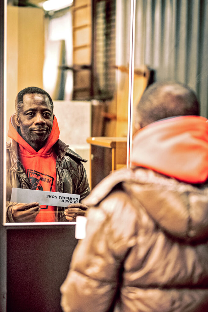 COMFORT ZONE IS OVER è un progetto fotografico che vuole mettere in evidenza il mondo del sociale, le realtà locali dell’assistenza, quei luoghi di un “mondo parallelo” di cui tutti conosciamo l’esistenza, ma che spesso non si vede. I centri sociali, le mense, le locande sono fulcri delle città in grado di accogliere le persone, generando attività di volontariato e assistenza anche sanitaria e psicologica. Il tema di Fotografia Europea 2023 – Europe matters, visioni di un’identità inquieta, ha stimolato in primo luogo noi, come fotografi, a uscire dalla nostra “comfort zone”, cioè dal nostro ambito fotografico usuale, dai nostri storytelling e dai soggetti che normalmente ricerchiamo. Fotografare i luoghi di accoglienza significa soprattutto mostrare quel mondo parallelo, un insieme di luoghi dove le persone spesso si trovano in periodi della vita difficile, fuori appunto dalla loro comfort zone. Mostrare questi ambiti significa anche portare a conoscenza del pubblico le persone che rendono possibile l’assistenza, dai professionisti ai volontari.