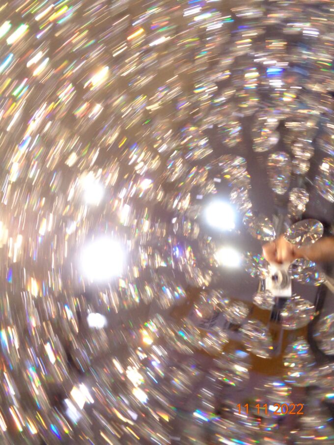 Il mondo visibile si apre in quell’istante inquieto, di migliaia di tasselli colorati, a formare la meravigliosa luce che sembra riflettere lo specchio dell’esistenza stessa, talvolta gioiosa, talvolta tenebrosa, ma sempre evocativa di mondi lontani o che forse sono già qui tra noi…