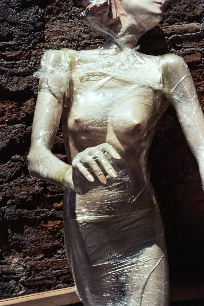 I manichini sono soggetti senz’anima che tuttavia possono dare vita ad emozioni creando una relazione con l’osservatore o il loro creatore. In qualche modo riprendono il mito di Pigmalione e della sua creatura a cui egli è indissolubilmente legato. Tale mito sarà poi ripreso nel corso dei secoli assumendo forme-simulacro sempre diverse e sempre nuove figurazioni del ‘doppio’. In questa serie sono presentate varie tipologie di manichini: quelli spogli, spesso privi di alcuni arti come se fossero stati oggetti di violenza o mutilazione, altri abbigliati e in vetrina e altri ancora dal volto quasi umano. Il manichino, oggetto di una lunga storia artistica e fotografica, costituisce una metafora, un modello di bellezza irraggiungibile, algida e glaciale, che si offre allo sguardo come oggetto di manipolazione visiva apparentemente rassicurante, ma al contempo in grado di far emergere aspetti nascosti dell’inconscio.