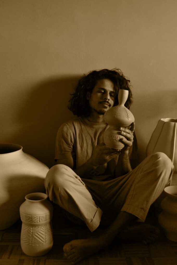 Il vaso è una metafora , un simbolo di appartenenza comune . Come un unico continente ricco di sfumature e forme diverse esso ci ricorda che siamo noi a definire il nostro essere proprio come le mani dell’artigiano , che libere da ogni schema, danno una forma al suo passato , presente e futuro. I simboli berberi incisi sulla superficie del vaso ci raccontano le origini dell’artista mentre le forme sinuose delineano la sua attuale e nuova strada. Per quanto riguarda il colore ho deciso di utilizzare il seppia per richiamare le calde tonalità del Maghreb facendo così esaltare luci e ombre.