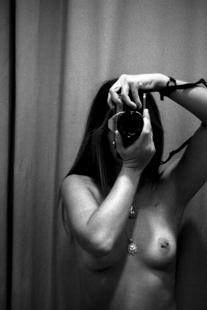 Un autoritratto allo specchio, una figura che si delinea nuda, vulnerabile e sincera.